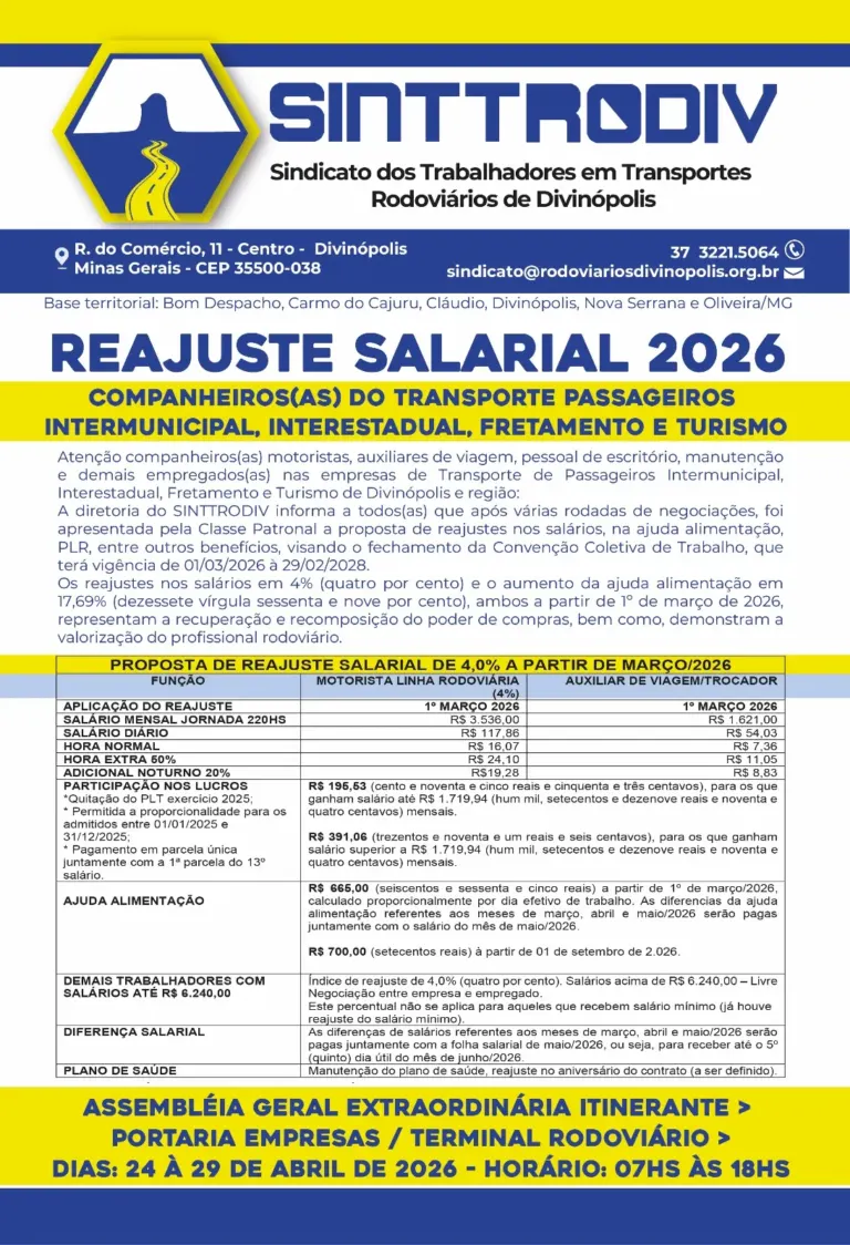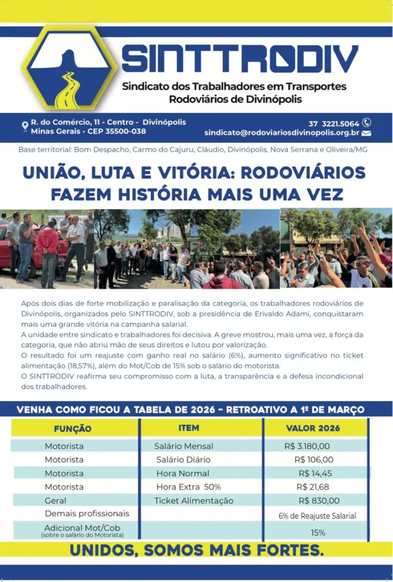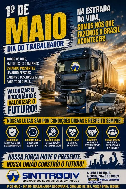 Em Divinópolis, o rodoviário sustenta a mobilidade da cidade, muitas vezes sem o devido reconhecimento. O 1º de Maio é resistência. É lembrar que sem organização e luta, direitos desaparecem. Valorizar o trabalhador é garantir o futuro.